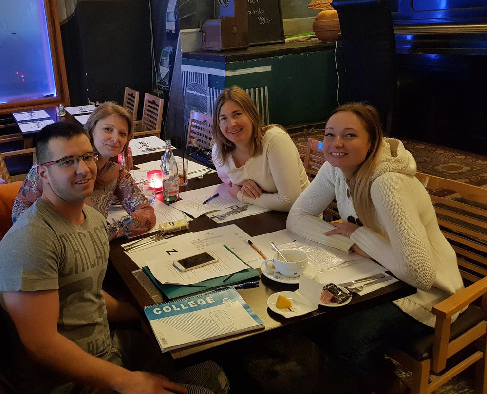Felszabadult, JÁTÉKOS, csoportos beszélgetés ANGOLUL, azért, hogy végre bártan szólalj meg, dobd a sutba a félelmeidet és használd a már megtanultakat.